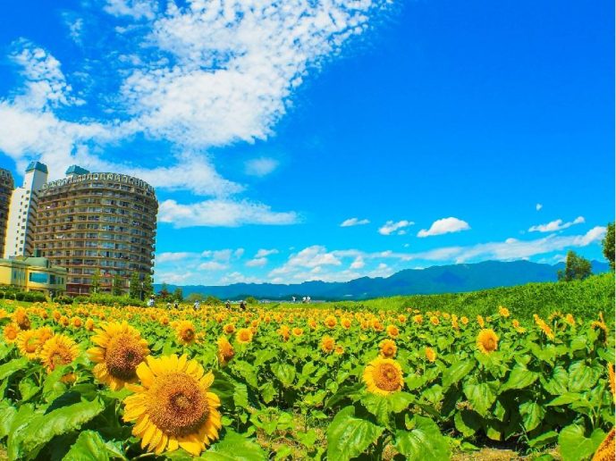 7월부터 8월까지 1만 그루 이상의 해바라기가 활짝 핀 광경이 펼쳐집니다.