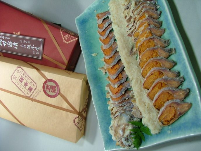 에도시대(1603-1868)부터의 역사를 지닌 사카모토야는 붕어 초밥과 호수 생선 조림을 꾸준히 만들고 개량시켜 왔습니다.