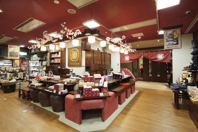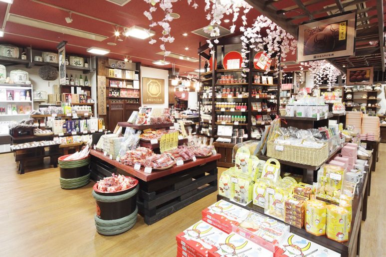 Provides a full range of souvenirs from Shiga, including confections, traditional art and local sake!