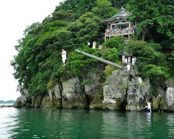 Famous for a ceremony that involves jumping into the water from poles sticking out from Lake Biwa.