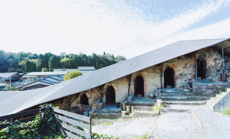 创业 1600 年的明山窑的直营店,Ogama。除了能够一边欣赏登窑一边喝咖啡的咖啡店以外,还设有商店、展廊和陶艺教室。