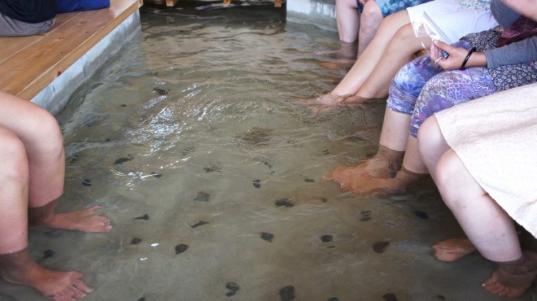 在車站前的足浴場體驗『雄琴溫泉』後,入住各旅館,享受悠閒時光。