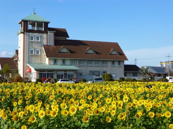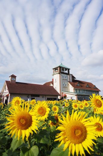 夏季2萬株、秋季1萬株向日葵在此絢爛綻放。還可花費200日元,採摘5株向日葵。