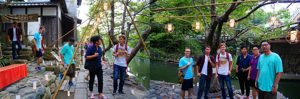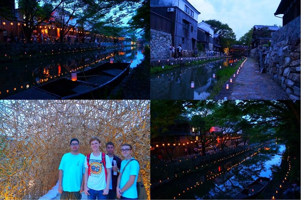 Japan really likes to light places up, especially here in Omihachiman. Actually, the day we explored this city (Sept. 17th)there was a festival going on. As you may be able to see from the background, the whole river way is lit by candlelight. Simply beautiful.